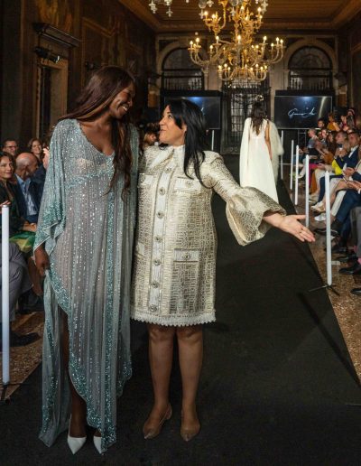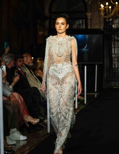 Con el tiempo, he logrado obtener un sello, una marca país. Que quienes vean mis diseños sepan qué es un “Giannina”, una distinción que queremos todos. Giannina es una marca que nos identifica, caribeña, con color, complementada con accesorios y elementos puramente influenciados por la cultura del Líbano, por mi padre. Esos ornamentos en bronce y cobre, que diría es el toque de la marca, esa etnia combinada con los trajes de gala y resort.