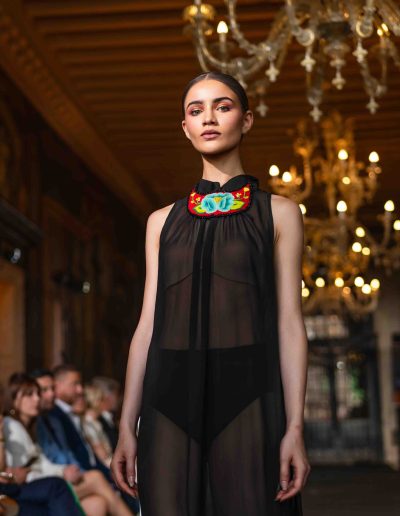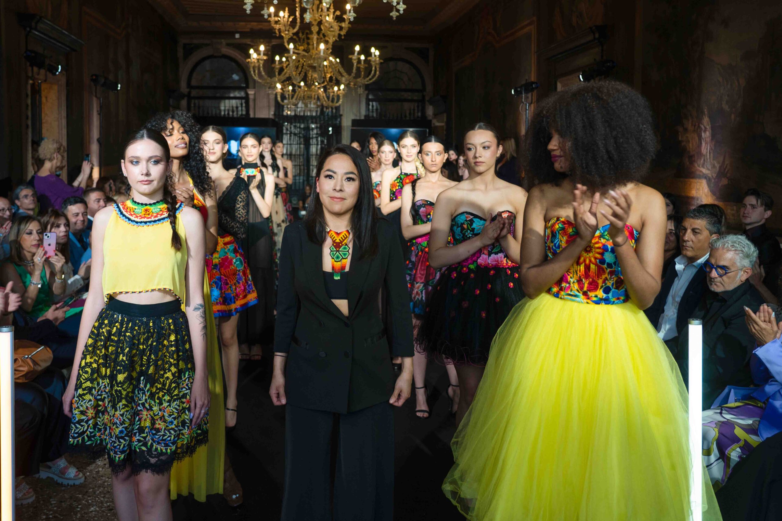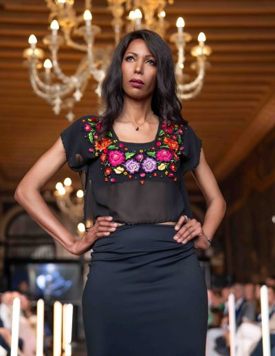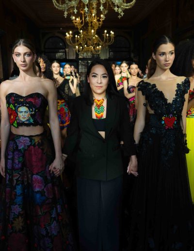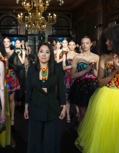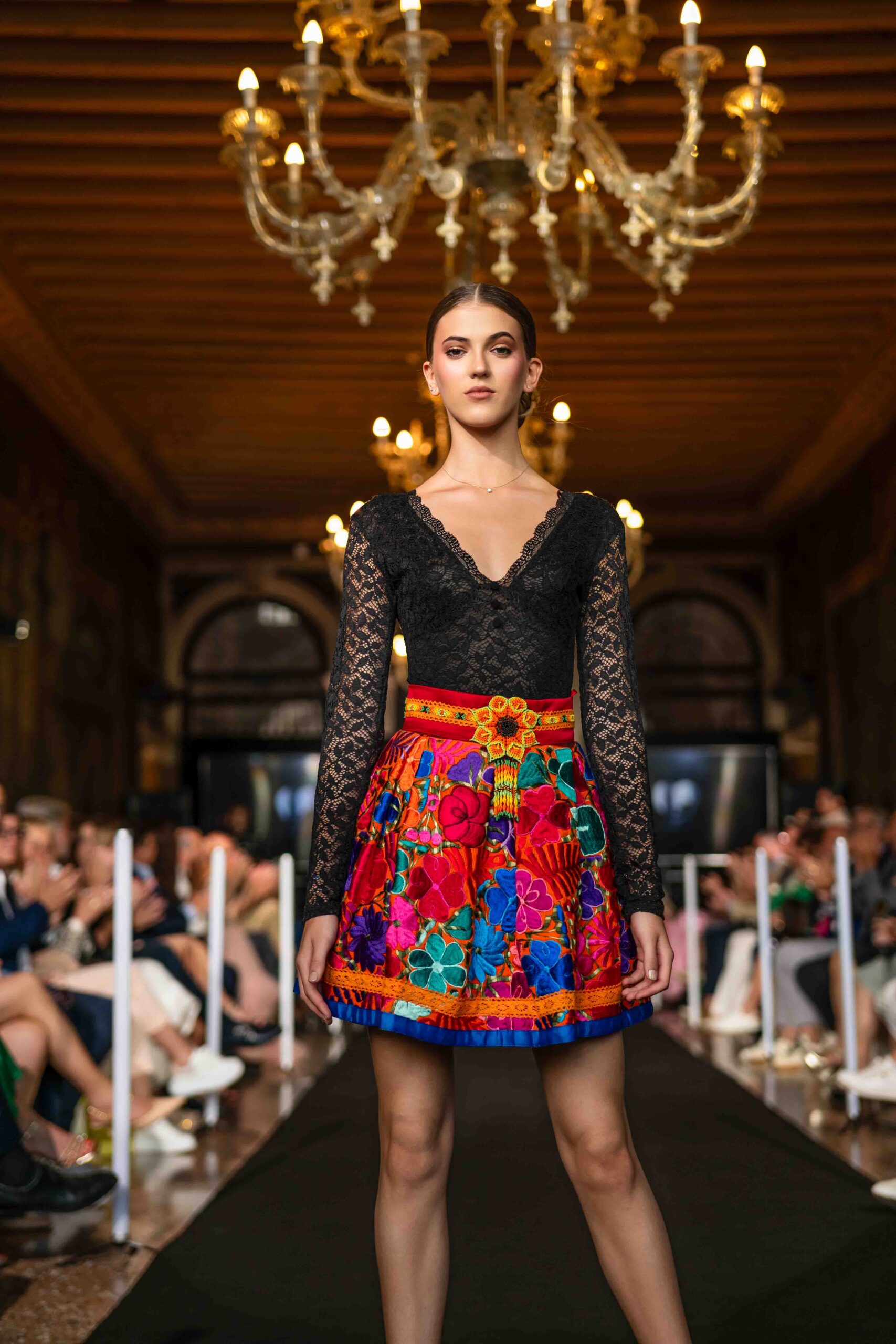 Milagros Ancheita, Master in Fashion Direction Brand & Product Management MILANO FASHION INSTITUTE del Politecnico di Milano, è la designer del marchio artigianale di alta moda Enamoramex e direttore creativo dell’Atelier Ancheita, proviene da una famiglia di donne designer e imprenditrici della moda.